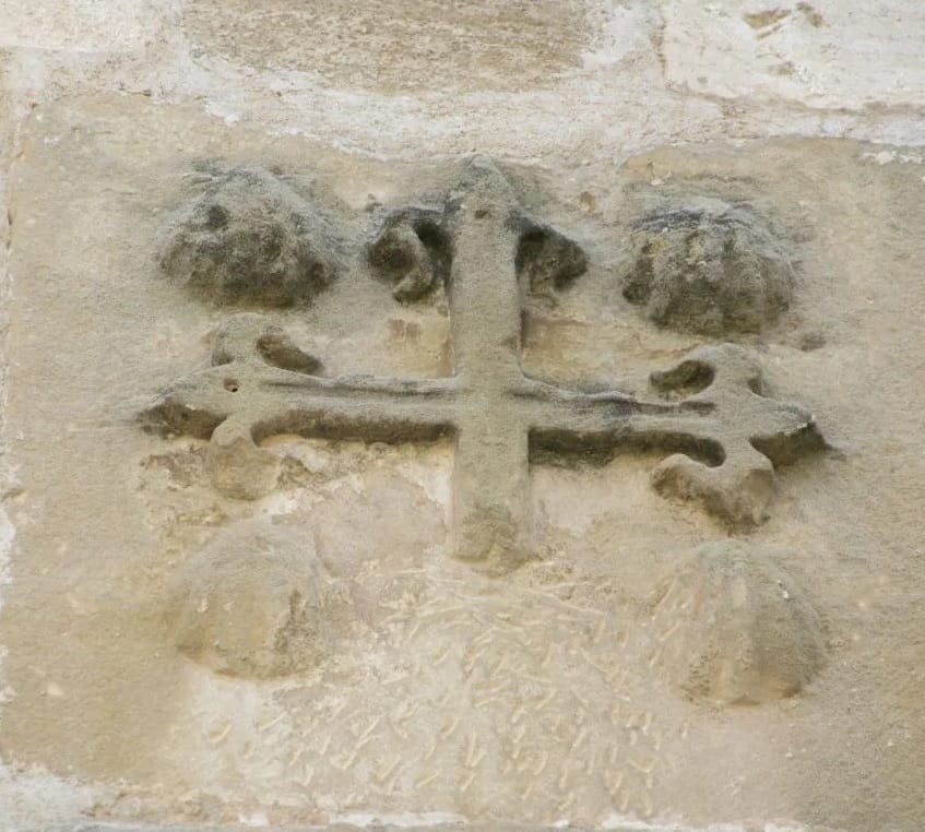 Respecto a los restos materiales del paso del Camino de Santiago por Salmerón, hemos de mencionar la portada oriental de la iglesia de la localidad, conocida por los salmeronenses con el tradicional nombre de «puertas antoneras» y que nuestros amigos del Camino conquense denominan como «puerta de los peregrinos». La presencia sobre su arco de la cruz de Santiago- a veces difícil de identificar por tener erosionada su parte inferior- rodeada de las vieiras jacobeas, resulta un testimonio incontestable. Desde luego, es de suponer que los peregrinos que hiciesen parada en el pueblo cruzasen ante ella antes de dirigirse, atravesando por la salida de San Juan, al alto de San Matías, para continuar camino hacia Cifuentes.